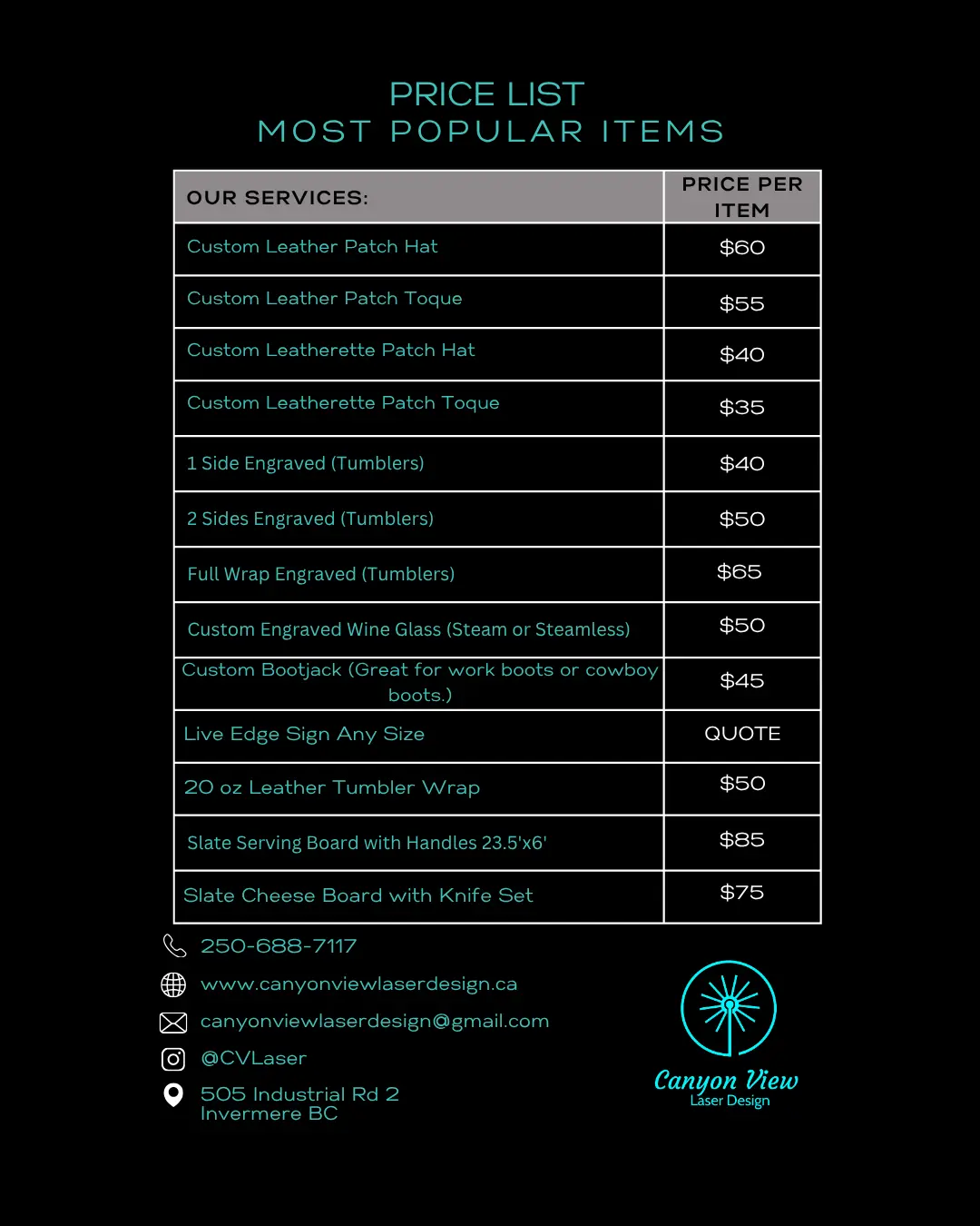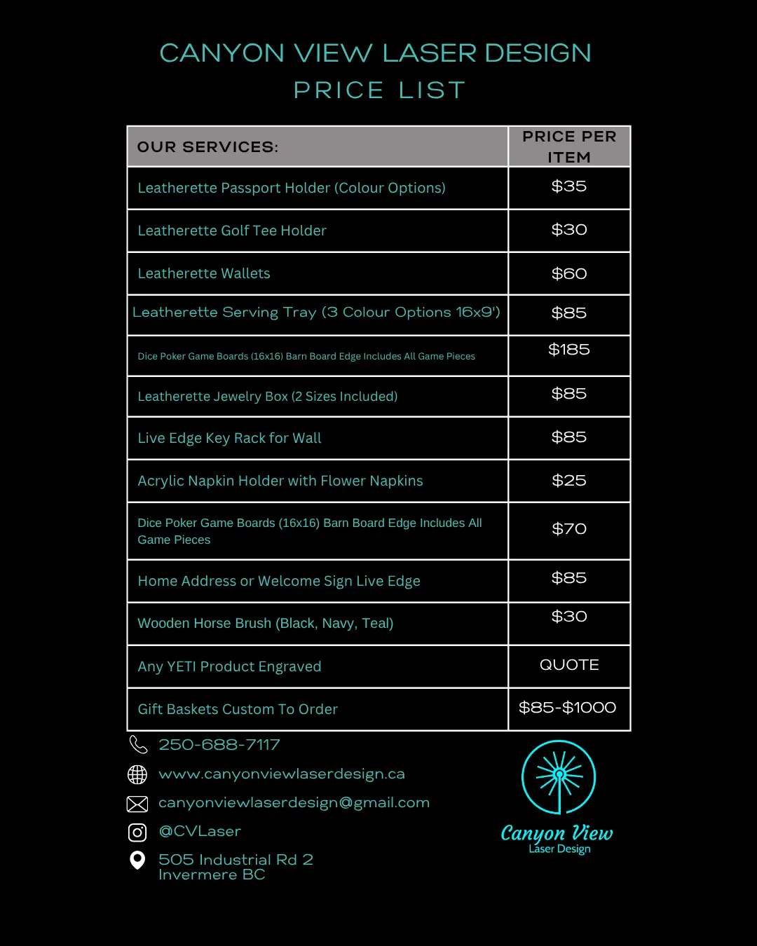 Weather your looking for a unique personalized gift? Looking for engraving for your business needs? Our custom laser engraving might be right for you!